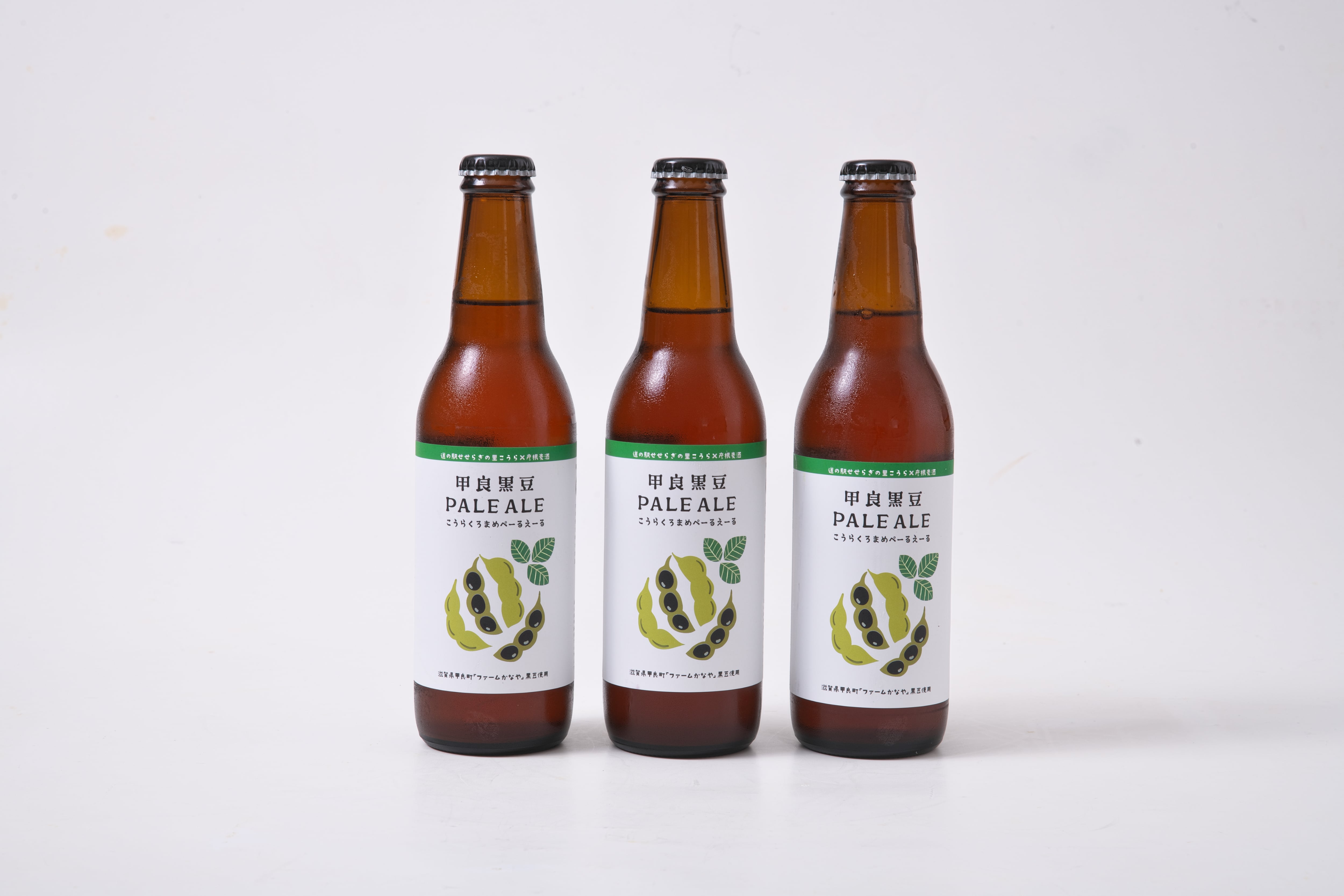 道の駅せせらぎの里こうらオリジナルクラフトビール「甲良黒豆PALE ALE」3本セットです。