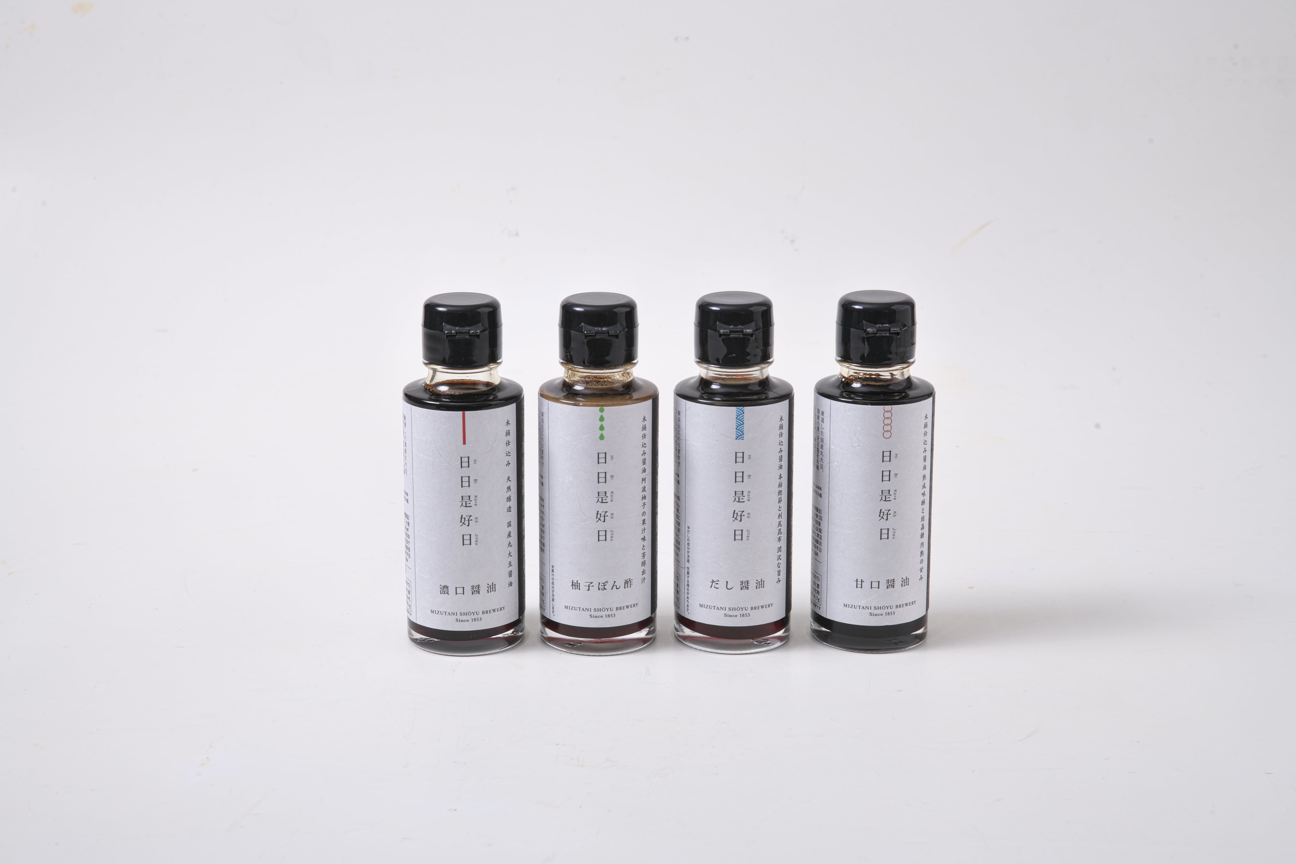おしゃれな水谷醤油の4本セットです。サイズも100mlと使いやすいサイズです。